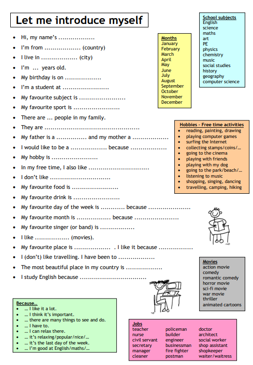 Descarga o abre la ficha “Let me introduce myself” en el material de la clase.