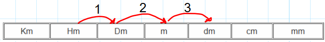 De Hm a dm hay tres saltos, hacia la derecha , entoces se multiplica por 1000