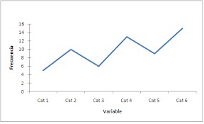 Los gráficos de línea se utilizan para mostrar cómo cambia una variable con el correr del tiempo. En este tipo de gráficos, un conjunto de puntos es conectado por medio de líneas rectas que, en conjunto, muestran la dinámica más o menos regular del comportamiento de una variable en relación con otra. Por ejemplo, se pueden utilizar para mostrar cómo ha variado la temperatura promedio de una ciudad en los últimos cinco años.