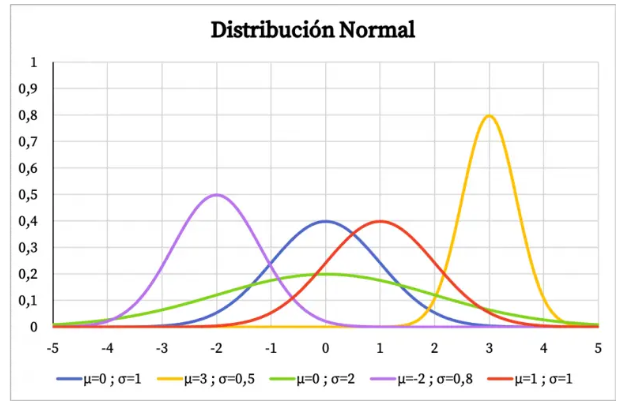 Una vez hemos visto en qué consiste la distribución normal y varios ejemplos de este tipo de distribución de probabilidad, vamos a ver cómo es su gráfica para entender mejor el concepto.