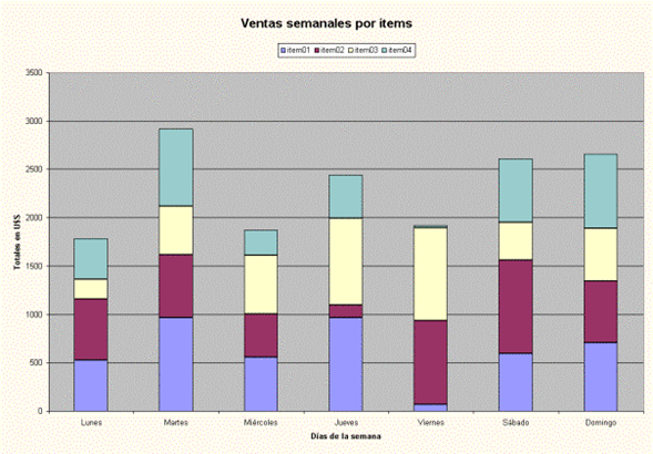 Este tipo de gráficos se pueden utilizar, por ejemplo, para graficar las ventas semanales, mensuales o anuales de un determinado producto.
