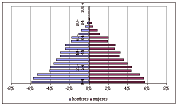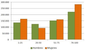 Este tipo de gráficos se utilizan con frecuencia para volcar resultados de censos poblacionales o estudios similares. En el ejemplo presentado, se distribuyen los valores en dos categorías (hombres y mujeres) a lo largo de los valores de edad, expresando la tendencia a través de las barras que conforman la pirámide.