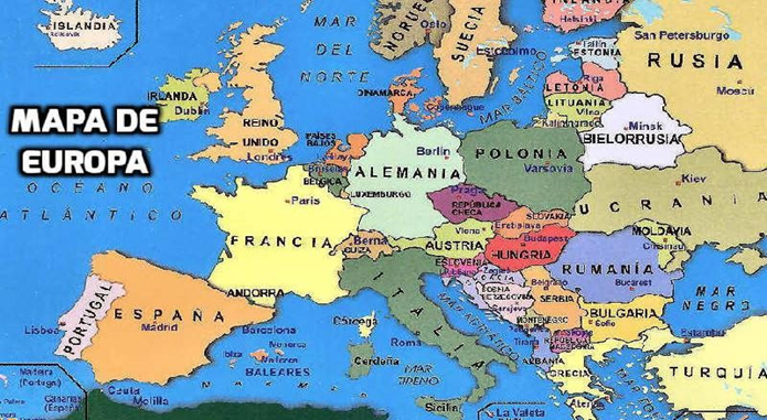 - Hidrografía: Océano Atlántico, océano Glacial Ártico, mar del norte, mar báltico, mar cantábrico, mar caspio, mar negro, mar mediterráneo, mar egeo, mar jónico, río Rin, río Danubio, río Loira, río Ródano, río Sena, río Volga, río Támesis, río Po, río Tíber, río Guadalquivir, río Ebro, río Elba.